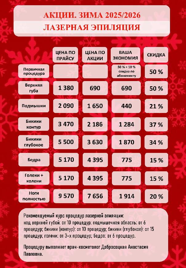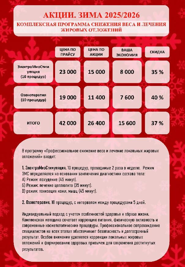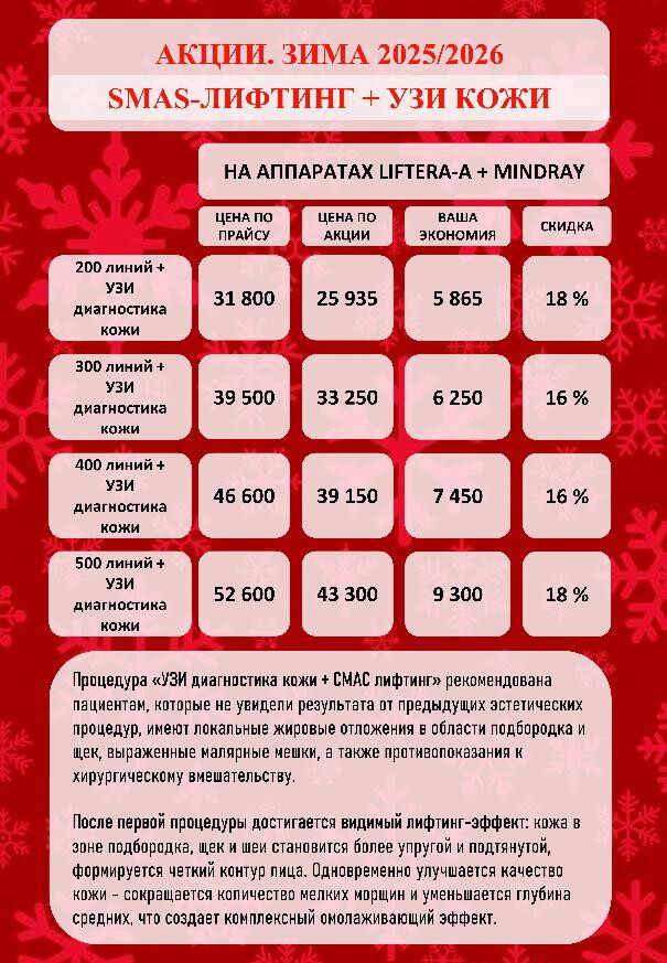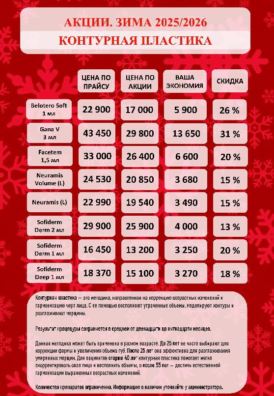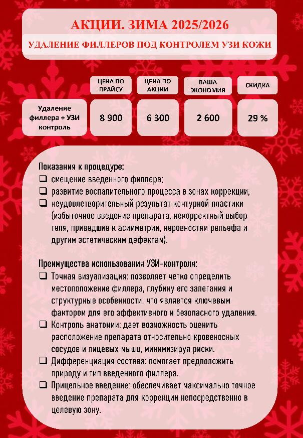 Также к услугам наших клиентов фотоэпиляция, ELOS, аппаратная и традиционная косметология, пилинг, обертывания, массаж тела при помощи вакуума, контурная пластика, биоревитализация, мезотерапия, установка мезонитей, ботокс, гиалуроновая кислота. Принимает специалист по мезотерапии кожи головы.